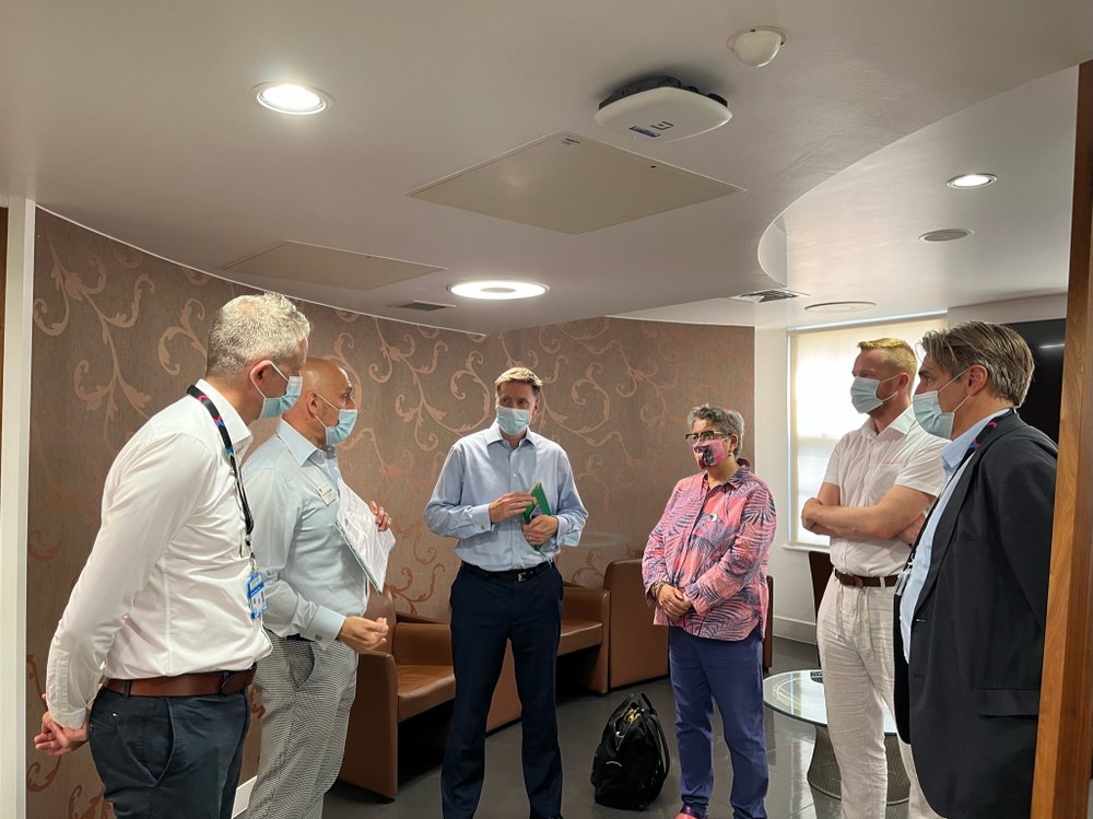 (Left to right: Charge Nurse Jon Clark, Chief Medical Officer Dr Roger Chinn, Consultant Dr Gary Whitlock, MP Lloyd Russell Moyle, Baroness Barker, Lead Clinician Dr Alan McOwan, and MP Steve Brine)