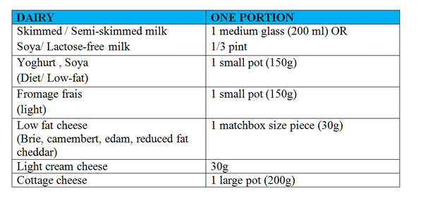 - 2 x 125g low-fat plain or natural yogurt or 0% fat yogurt per day. Aim to avoid fruit yogurts as they can be high in sugar and fat. You can add sugar free syrups or flavourings into the plain/natural yogurt to adjust the taste if needed.