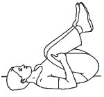 Lying with your knees bent and feet on the floor, lift your knees towards your chest. Place your hands behind both knees and draw them towards your chest. Hold approximately 10–20 seconds and repeat 2–3 times. |