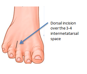 An incision will be made on the top of your foot over the inter-metatarsal space that the neuroma or neuromas are situated, as with the dorsal approach.
