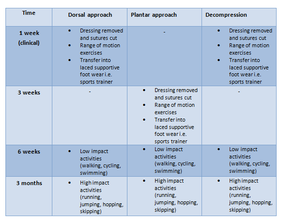 Post-operative mobilisation will be advised, this helps improve the flexibility, strength and stability of your foot.