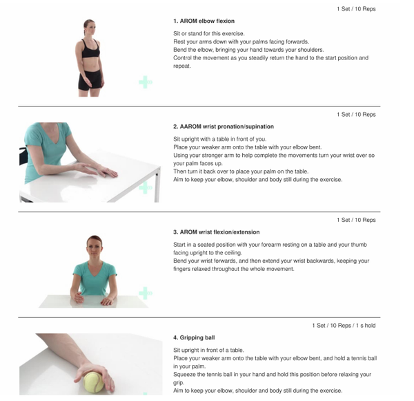 It is very important to start moving the injured elbow to prevent stiffness. The exercises need to be performed slowly; it may cause discomfort but if it’s very painful stop. You may find applying ice for up to 10-15 minutes following exercise helps with pain and swelling. Exercises should be performed 5 times a day during the day. It is also important you regularly move your wrist, shoulder and neck to prevent stiffness.