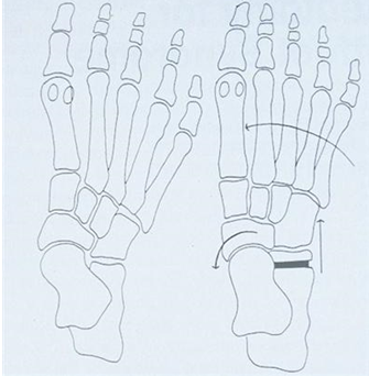 The pathological flat foot tends to sag at the navicular cuneiform joints. Given time the loss of alignment is fixed, often with arthritis present. Taking a wedge to correct the arch and reduce the instability is a common adjunctive procedure providing good stability to the arch.