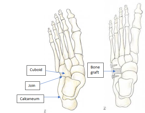 In adults, lengthening the lateral border of the foot remains very effective in correcting a flat foot. However, the traditional Evans procedure is not always well tolerated with arthritis sometimes developing in the adjacent calcaneocuboid joint. This approach lengthens the lateral border of the foot by fusing the calcaneocuboid joint using a bone graft, preventing arthritis from occurring in this joint.