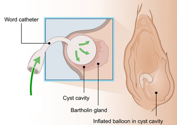 Possible problems include pain if the balloon is too full, this can be relieved by removing some of the fluid. Occasionally the doctor or nurse will find that the abscess appears unusual or complex and therefore surgery is needed under general anaesthetic to treat it properly and a small sample of tissue (biopsy) is taken from the Bartholin’s gland for investigation. The Word catheter can be difficult to insert or cause an abscess, but this is uncommon.
